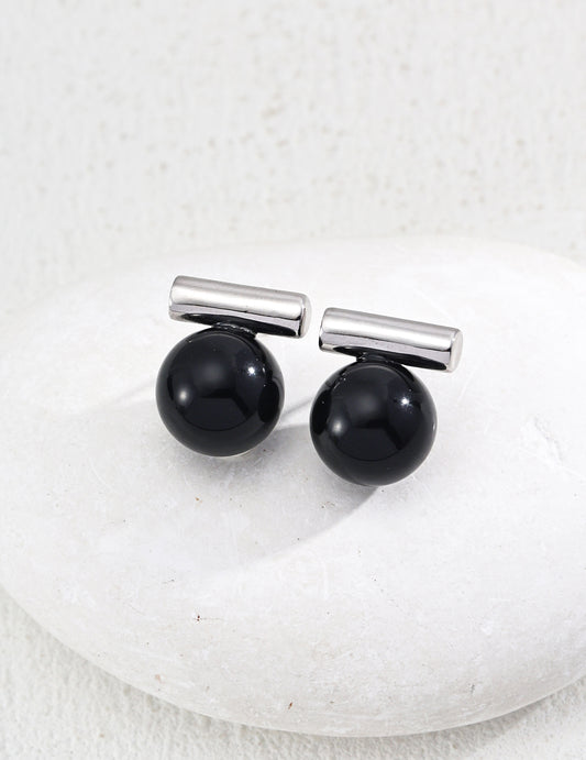 S925 Silver Black Agate and Tiger's Eye Earrings